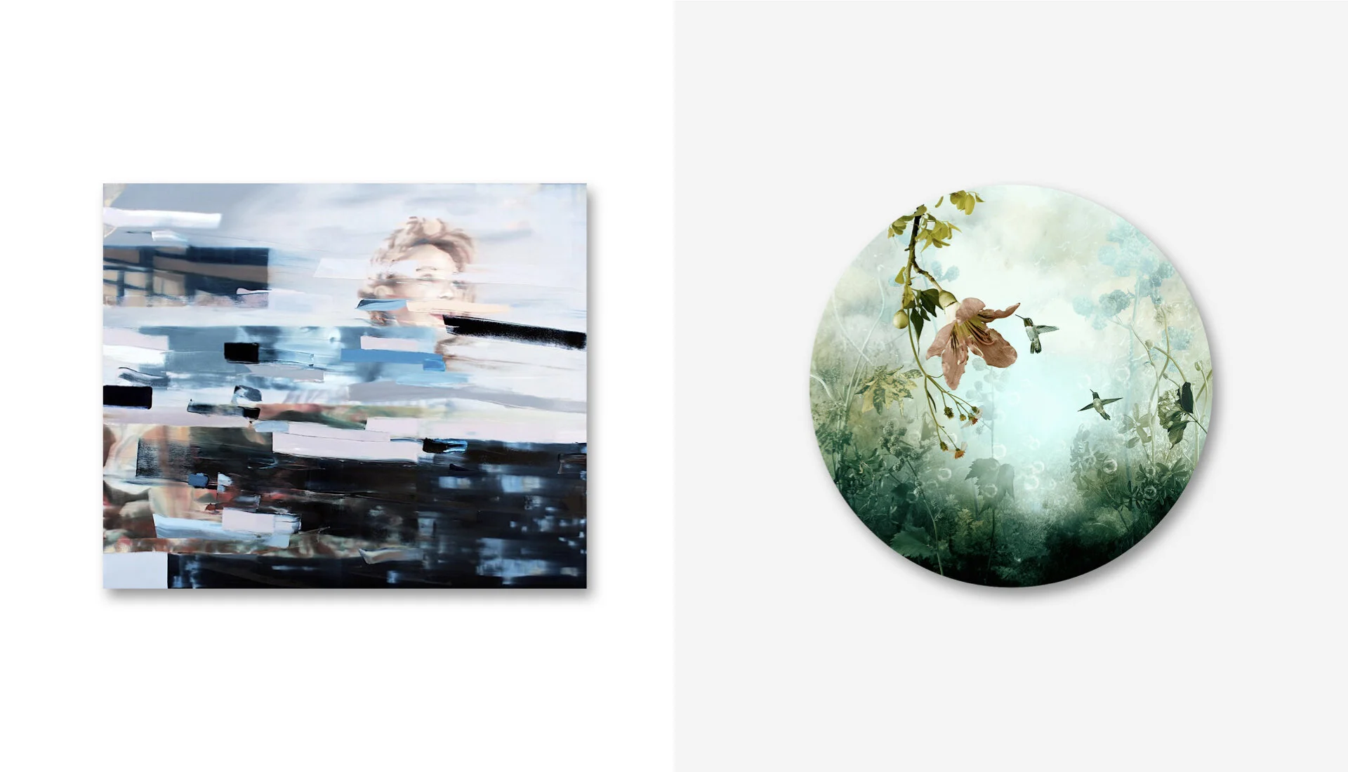 IAN KIMMERLY | Silent Partner | oil on canvas | 60” x 72” || YSABEL LEMAY | Ousia | Photographic Collage | 36” diameter