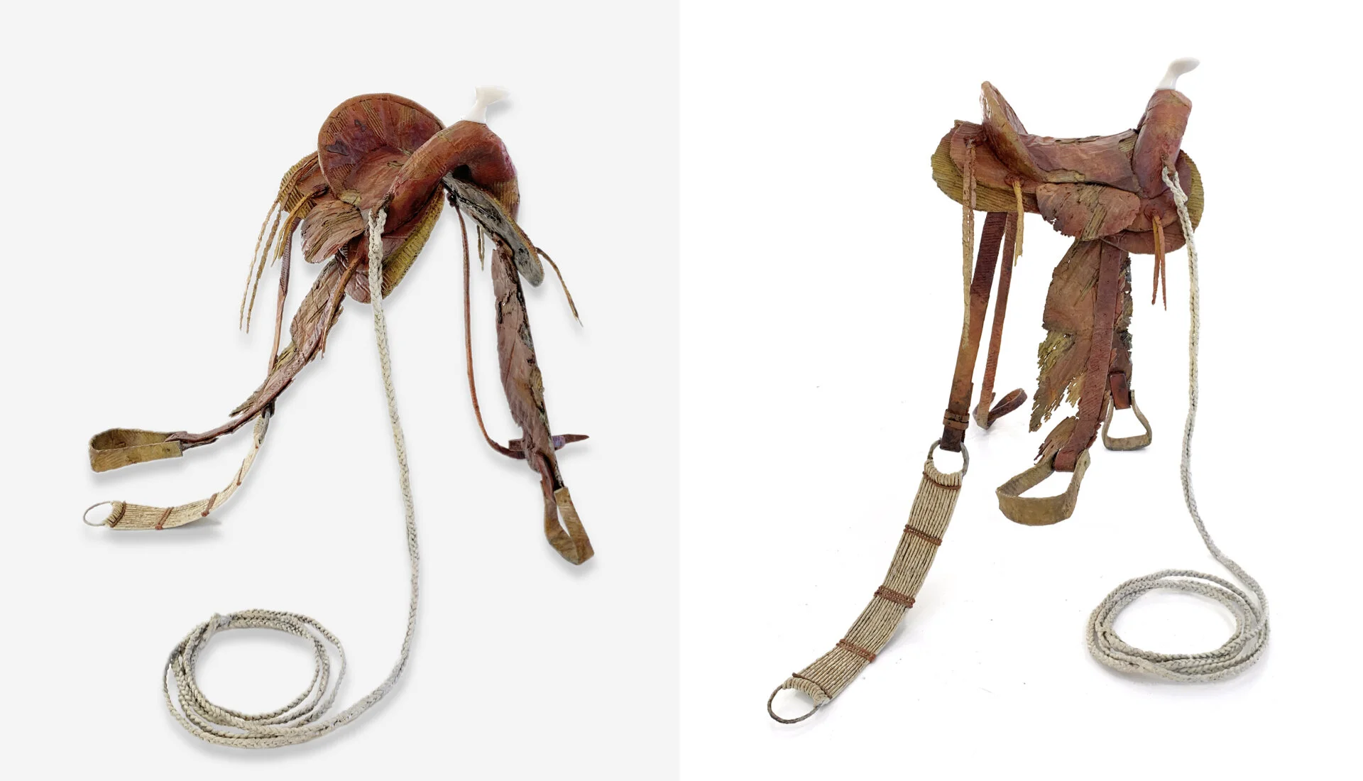 DAVID MIDDLEBROOK | How The West Was Lost, 2019 | Cast Bronze from Fabricated Cardboard, Patinated Ceramic Oxides, and Carved Italian White Marble | 49”H x 64” W x 42” D