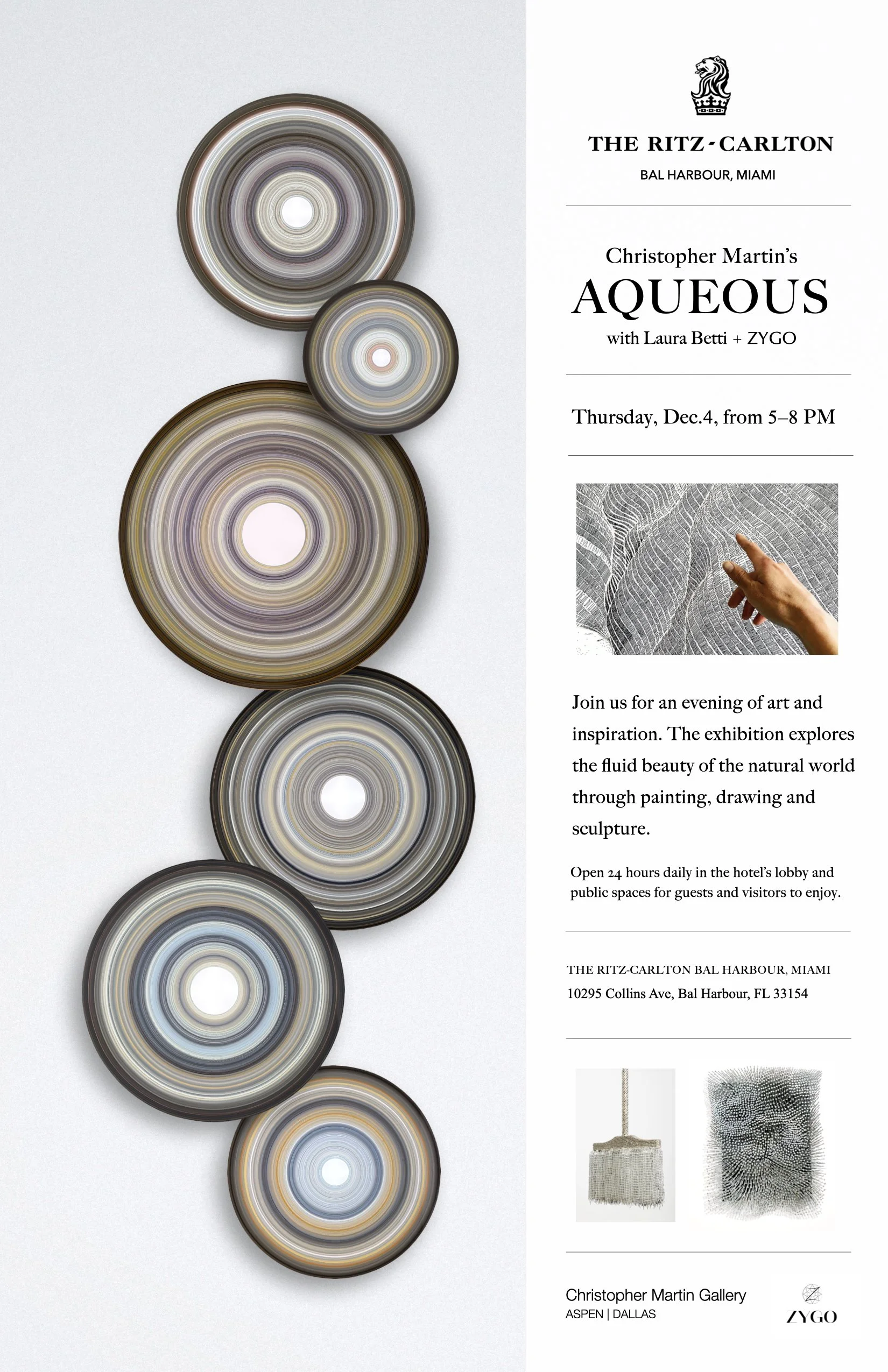 AQUEOUS brings together the work of Christopher Martin, Laura Betti, and ZYGO in a luminous meditation on water, light and movement.