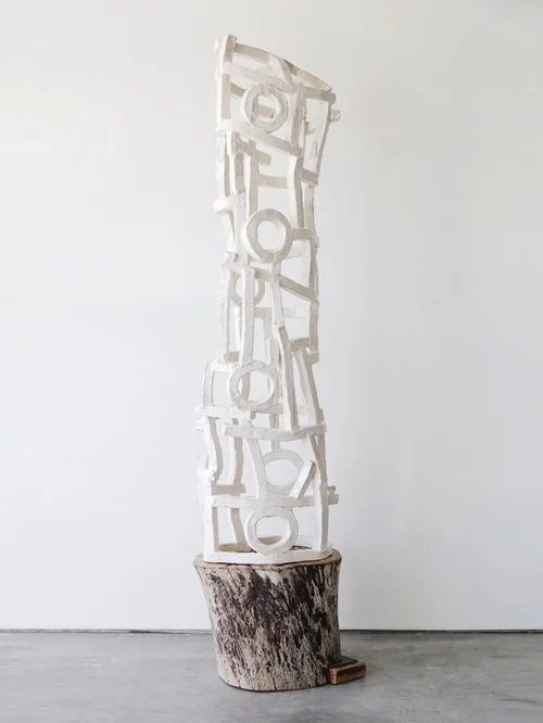 stoneware with porcelain slip and wood | 84 x 14 x 12 in. | available Artist Studio