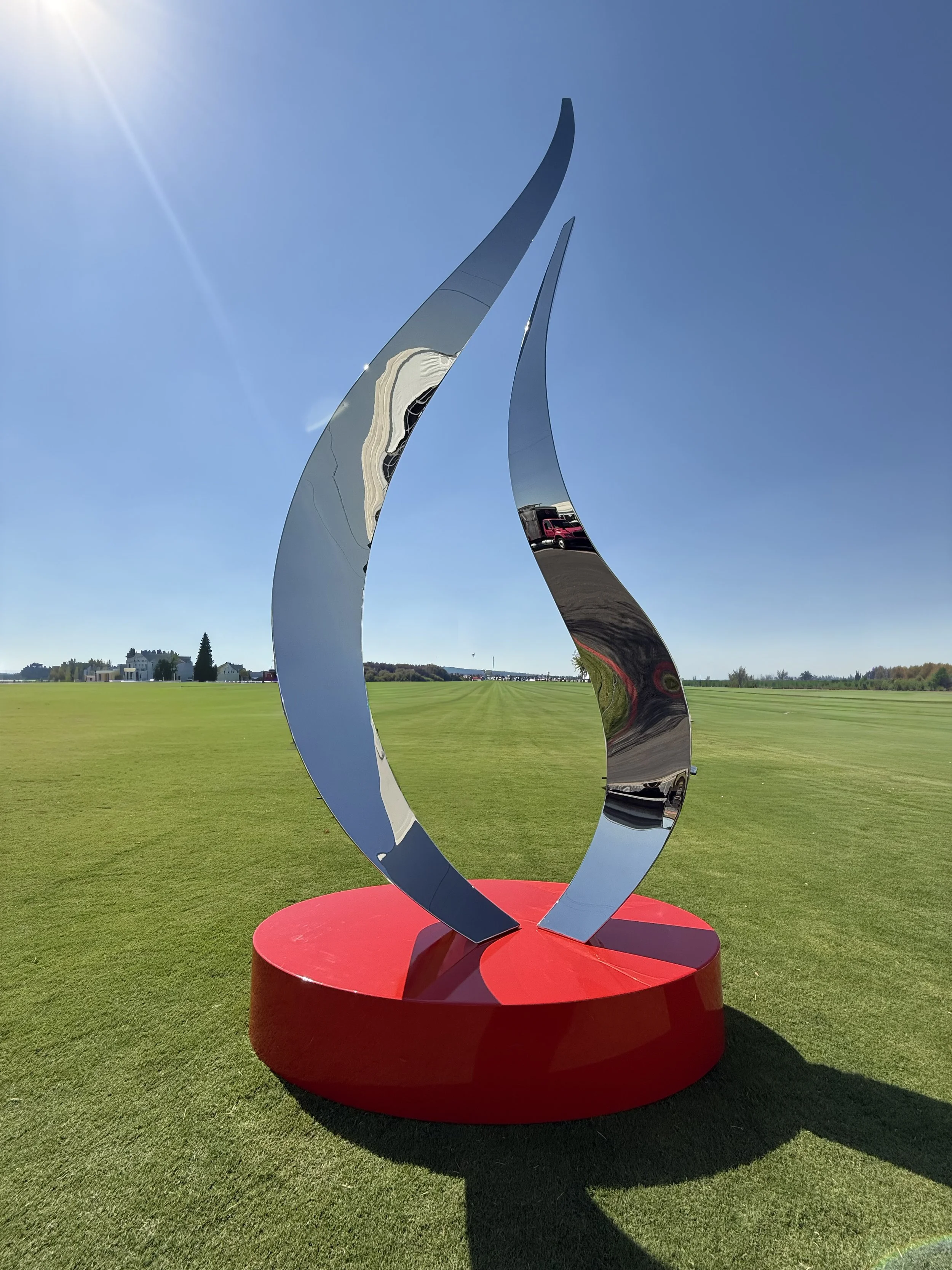 Central to Schmidt’s vision is reflection not only in the mirror-polished surfaces of his work, but in the deeper sense of presence and awareness it evokes. As light, weather, and seasons shift, so too does the sculpture’s character, creating a living dialogue between the piece and its environment. This responsive quality makes each installation a continually renewing experience.